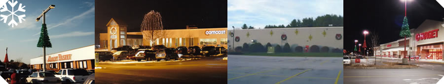 Christmas Decorating Specialists offer professional holiday decorating to companies all over New England. We can help create a cheerful atmosphere for your customers and employees by festively decorating your parking lot and/or store front. Whether you are a small company, large company or a property management firm, we have the skills to create a design that meets your needs within your budget.